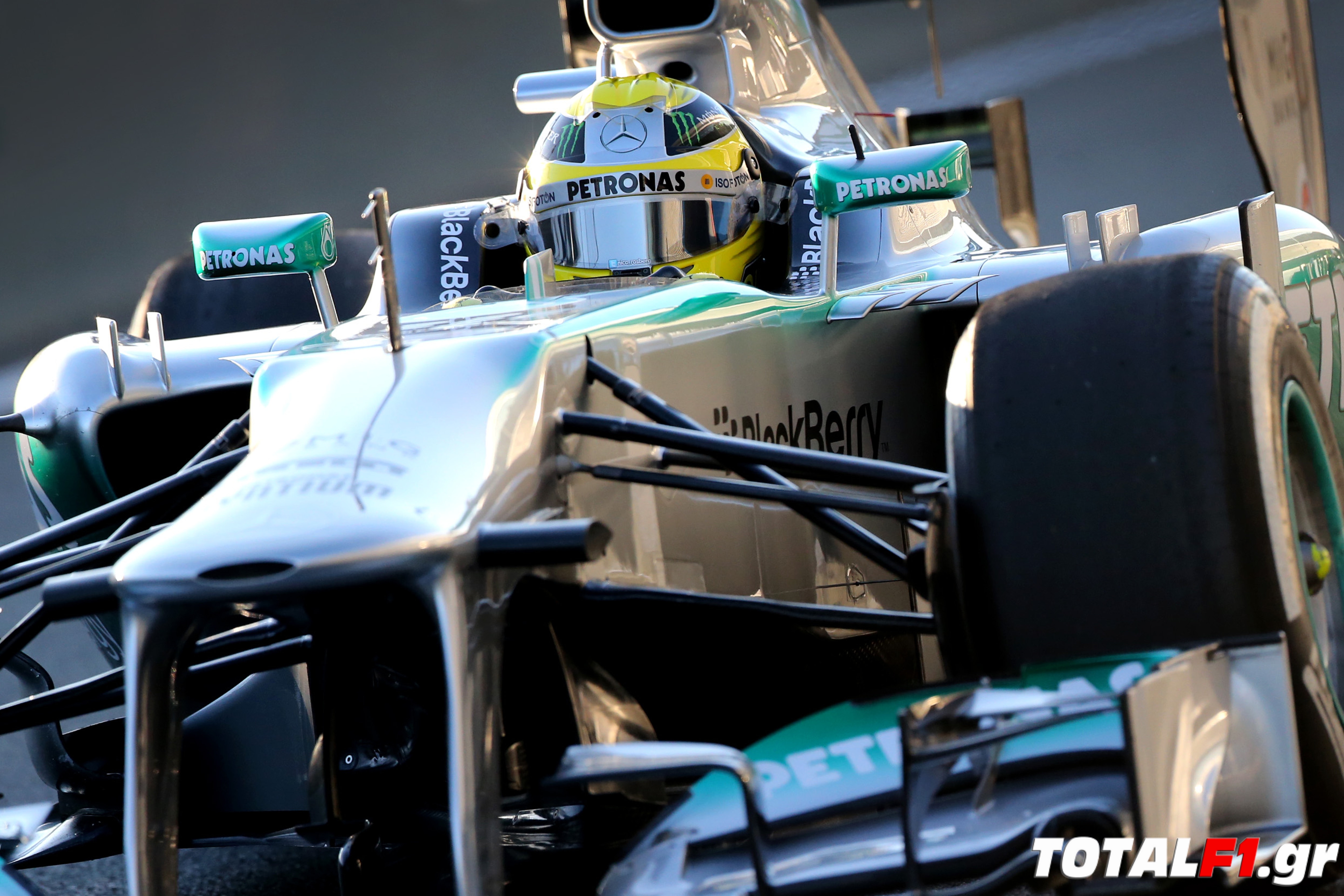 Ο Nico Rosberg στάθηκε άτυχος διότι κατάφερε να συμπληρώσει μόνο 11 γύρους με την W04 λόγω ηλεκτρονικών προβλημάτων που προκάλεσαν την υπερθέρμανση του πίσω μέρους του μονοθεσίου του, όπως ανακοίνωσε η Mercedes. Ο οδηγός που συμπλήρωσε τους περισσότερους γύρους(84) ήταν ο Pastor Maldonado με το περσινό μονοθέσιο της Williams, το οποίο είχε αρκετές αναβαθμίσεις που θα μπουν στο καινούριο μονοθέσιο του 2013.