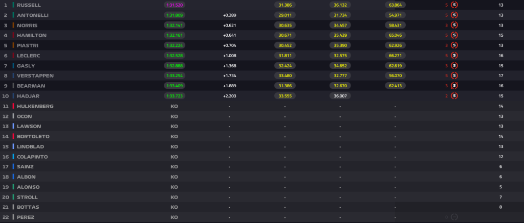 Αναλυτικά η κατάταξη του Sprint Qualifying: