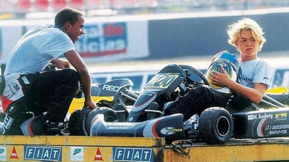 Hamilton και Rosberg φαίνεται πως είχαν κόντρα από μικροί, και όταν λέμε από μικροί εννοούμε την παιδική τους ηλικία στα καρτ. Τότε δημιουργήθηκε μια αρκετή δυνατή φιλία μεταξύ τους και μαζί κάναν όνειρα πως κάποια στιγμή θα γίνουν πρωταθλητές. Συμμετείχαν εν΄έτι 2000 στην ίδια ομάδα καρτ, την ΜΒΜ (Mercedes-Benz/McLaren) της κατηγορίας Formula A με τον Βρετανό να στέφεται πρωταθλητής εκείνη τη χρονιά. O Rosberg ήταν αρκετά κοντά εκείνη τη χρονιά. «Μπορούσαν να τρέχουν σε αγώνες ακόμη και για να φάνε μια πίτσα, τρώγοντας πάντα δυο τη φορά» ανακαλεί χαρακτηριστικά ο Robert Kubica που είχε τρέξει πλάι τους πριν φτάσουν στην F1. To παλιό αφεντικό τους στα καρτ Dino Chiesa θυμάται χαρακτηριστικά: «Τους άρεσε τόσο πολύ το παγωτό, ειδικά η βανίλια. Μέσα στη νύχτα ήθελαν πάντα παγωτό, οπότε έπρεπε να τους κρατάω ευχαριστημένους. Ήταν απλά παιδιά.»