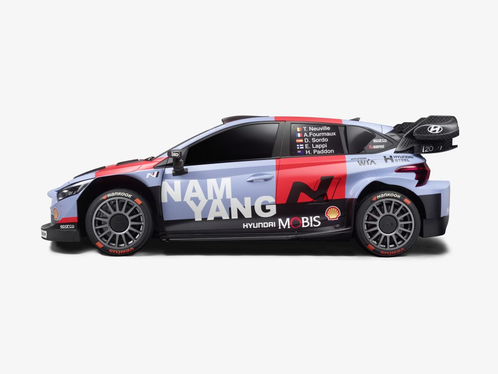 Οι Νοτιοκορεάτες διατήρησαν αρκετά στοιχεία από το livery των προηγούμενων ετών, διατηρώντας το σιέλ στο μεγαλύτερο κομμάτι του αυτοκινήτου. Η πρώτη αλλαγή, είναι το μαύρο χρώμα, το οποίο καλύπτει ένα εξίσου σημαντικό μέρος του Hyundai i20 N Rally1. Επιπλέον, η ομάδα επέλεξε να αποτίσει φόρο τιμής στην αγωνιστική κληρονομιά της σε ολόκληρο τον κόσμο. Τα χαρακτηριστικά του τιμούν το Nurburgring, έδρα της Hyundai N και το Namyang, που είναι έδρα του Hyundai Motor Group. Καθ’όλη τη διάρκεια της σεζόν ειδικοί χρωματισμοί θα παρουσιαστούν σε επιλεγμένους αγώνες.