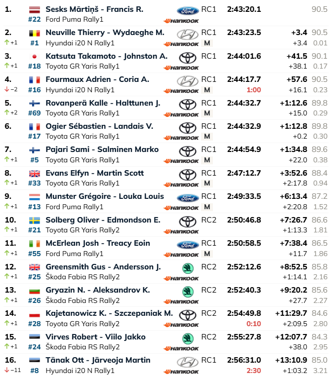 Αναλυτικά η κατάταξη μετά τις ποινές που δέχθηκαν οι Ott Tanak και Adrien Fourmaux